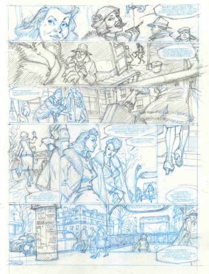 Encore une page extraite de '"Partir", le prochain album de Jack Manini et Michel Chevereau. Il s'agit cette fois du crayonné de la seconde page, sur laquelle on peut admirer tout le talent de mise en scène du dessinateur.